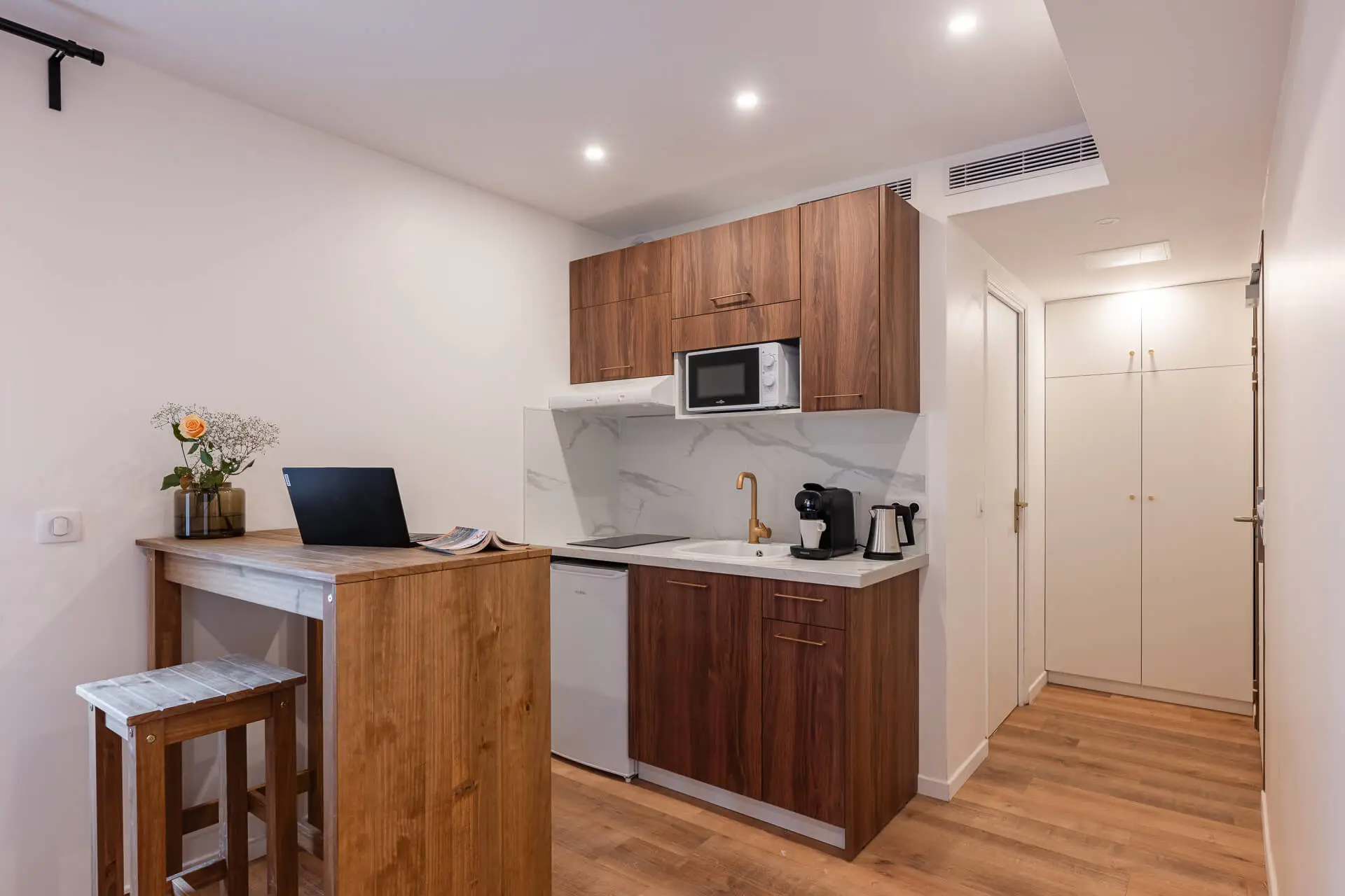 Situé au 1er étage, cet appartement est la solution idéale pour les groupes souhaitant rester ensemble dans un même logement, avec la flexibilité de l’appart’hôtel et les services de La Villa Le Bourget inclus.